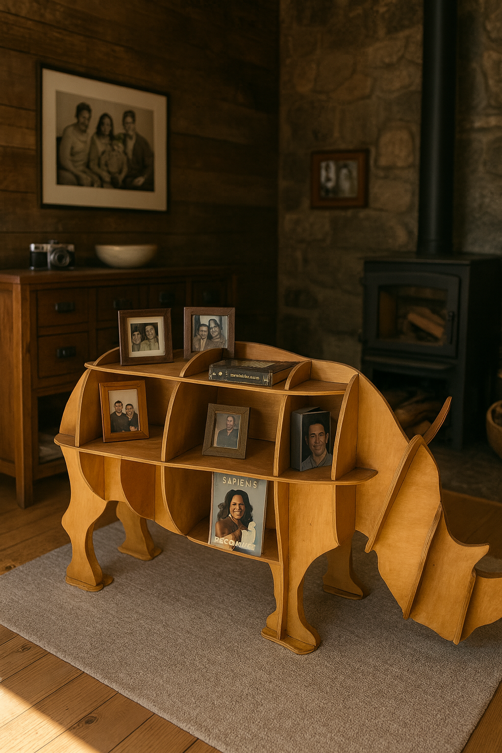 Úsalos como estanterías para libros, juguetes o decoración. Su diseño único agrega un toque lúdico y práctico a cualquier ambiente.